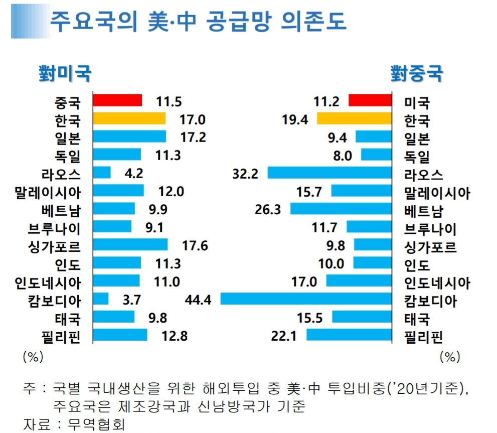 앞서 말한 경제의 분절화로 인해 우리나라는 사이에 끼어서 줄다리기를 하고 있습니다. 각국에 공급망의존도가 높아 어느 한 쪽을 포기할 수 없는 구조이죠. 이런 자원의 무기화로 인해서 고비용이 고착화 되고 있고 이는 고물가를 유지하며, 고금리가 계속해서 유지되도록 하는 원인이 됩니다.