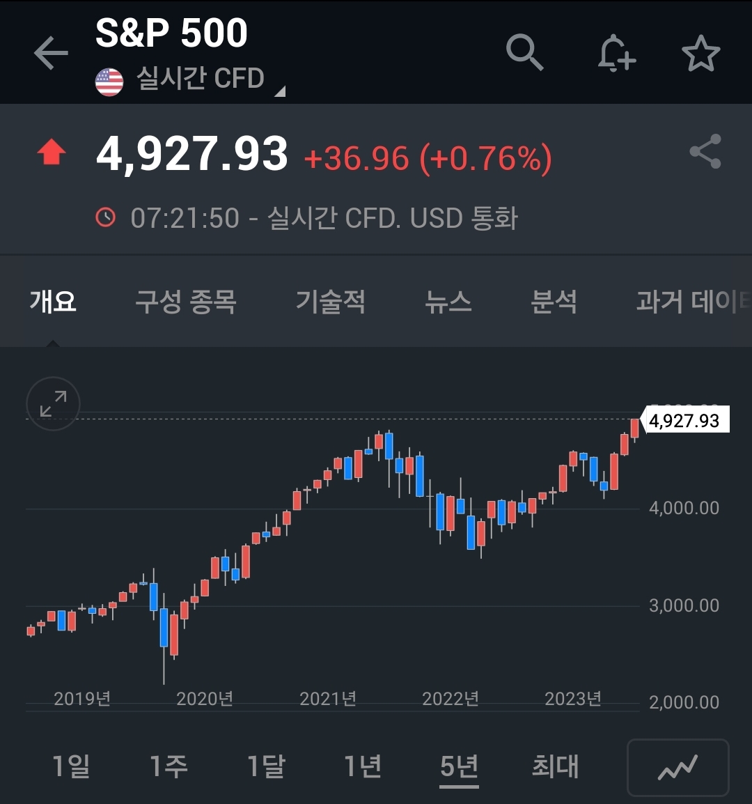 개인적인 생각으로는 지금의 미국 증시 가격이 거품이라고 생각하진 않지만 적극적으로 사도 되는지는 한번 생각해 봐야합니다. 증시는 언제든지 적정가격에서도 과매도구간으로 들어가며 조정이 일어나기도 하니까요. 게다가 지금 이렇게 과열이라는 우려섞인 목소리도 나온다는 것은 증시의 상승에 피로감을 느끼는 투자자들이 증거기도하죠. 아무리 적정 평가를 받고 있는 증시라도 등락을 반복하며 우상향하기 때문에 조정은 올 수 있다고 생각합니다.
