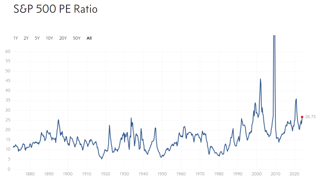 게다가 코로나 시기의 거품 상태가 최근이었던 2022년, 1년 내내 30%가까이 하락하면서 거품을 꺼뜨린지 얼마 지나지않아 다시 거품이라는 이야기가 나온다는 것은 과도한 걱정이라는 생각도 들게합니다. 주가는 바닥을 찍고 다시 전고점을 온상태고, 그 전고점의 가격은 시간이 지나며, 인플레에 의해 정상적인 가격으로 판단되는 위치라고 보여지네요.