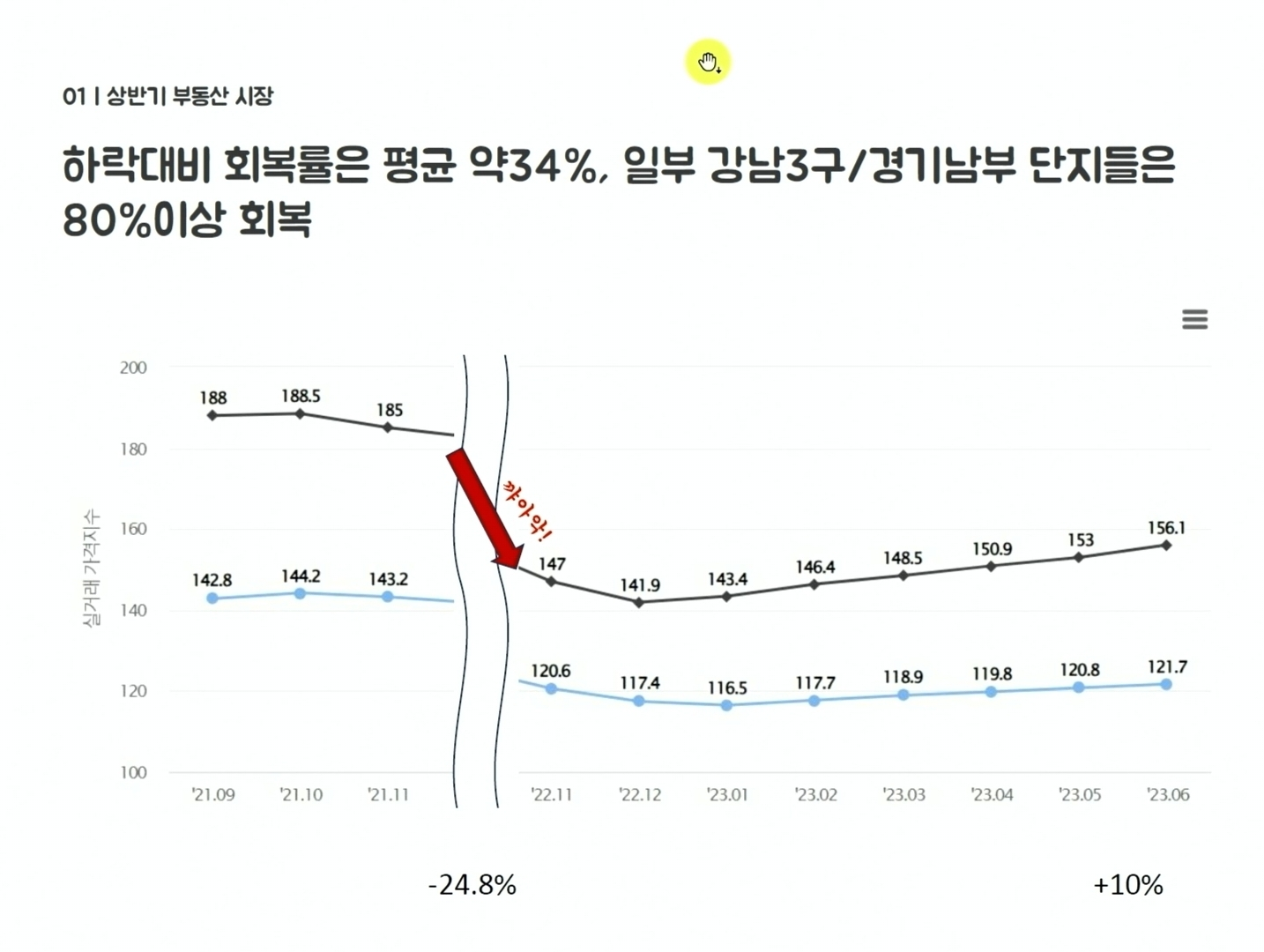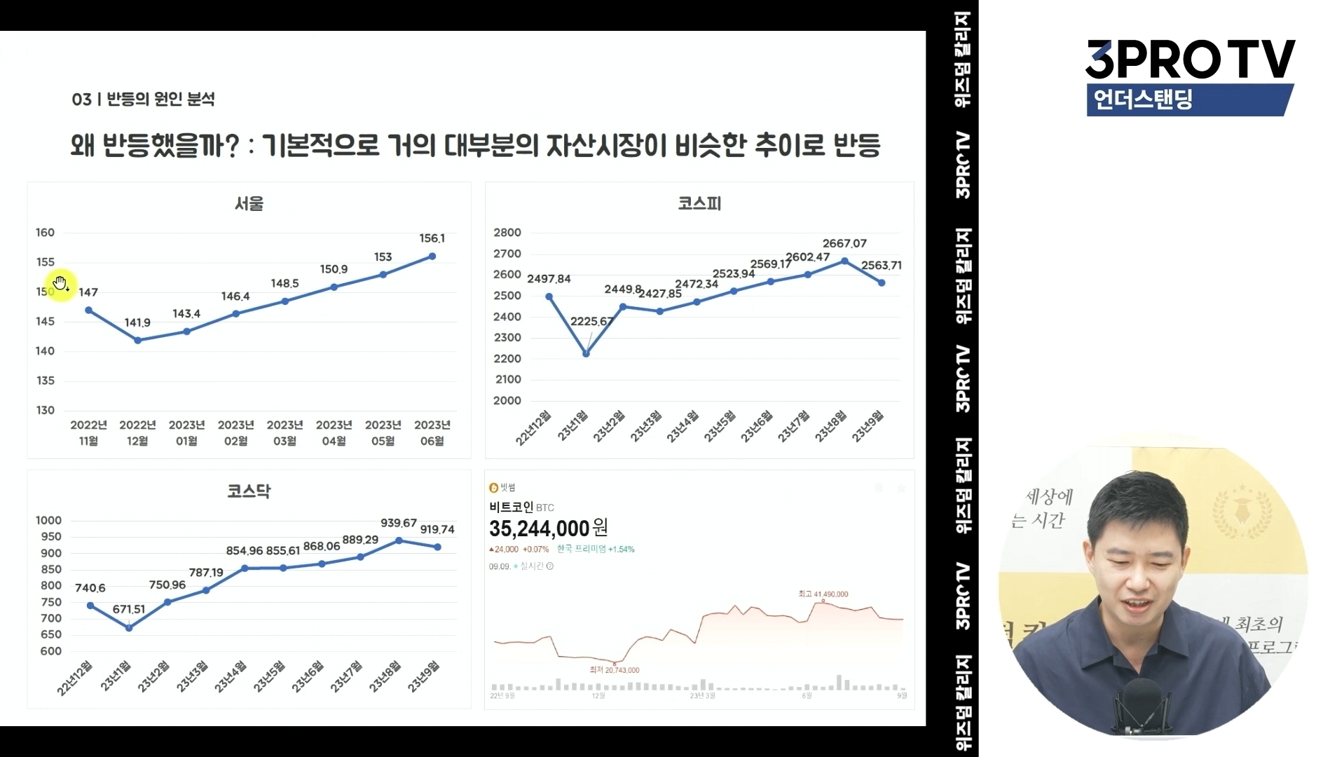 그럼 왜 반등했는지 보면 모든 자산시장의 그래프와 비슷하다고 봅니다. 특히 부동산은 투자화 되어있는 지역이 더 비슷한 추이를 그립니다.